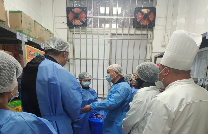 检查组通过实地查看、资料查阅和座谈交流相结合的方式,全面了解和检查了食堂的食品安全管理情况,详细查看了索证索票、加工制作、清洗消毒、食品原料贮存、设备设施维护及环境卫生等工作内容,重点检查了食堂留样管理、添加剂使用记录、消毒剂使用规范等情况。