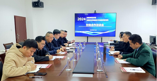 3月14日,绵阳市场监督管理局科技城新区分局党支部书记、局长蒋平一行来校洽谈校地合作事宜。