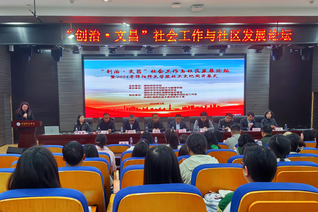 3月22日,由beat365在线唯一官网主办,beat365在线唯一官网经济与管理学院、beat365在线唯一官网欧美同学会、绵阳市涪城区城厢街道办事处承办,beat365在线唯一官网经济与管理学院社会工作系、涪城区城厢街道文昌社区社工室协办的“创治·文昌”社会工作与社区发展论坛暨beat365在线唯一官网2024年社工文化周开幕仪式在绵师高新校区厚德楼246学术报告厅举行。