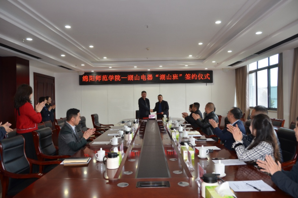 在热烈而友好的氛围中,王力与潘志祥代表双方共同签署了《校企合作“湖山班”培养协议》。这一协议的签署标志着学校与四川湖山电器股份有限公司的“订单班”式人才培养方案正式启动,双方合作开启了新的篇章。