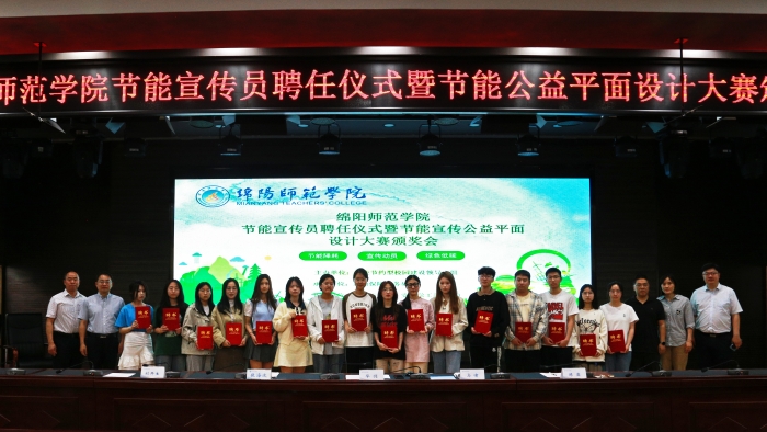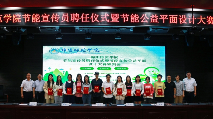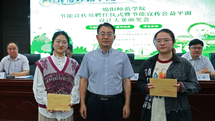 后勤保障服务处处长敬海波宣读了“2023年四川省公共机构节能宣传公益平面设计创作大赛”表彰文件。beat365美术与艺术设计学院李寒汐老师荣获“优秀指导老师”奖、石欣兰同学的作品《生活中的节能降碳》荣获“二等奖”。毕剑为获奖师生颁发了奖金。