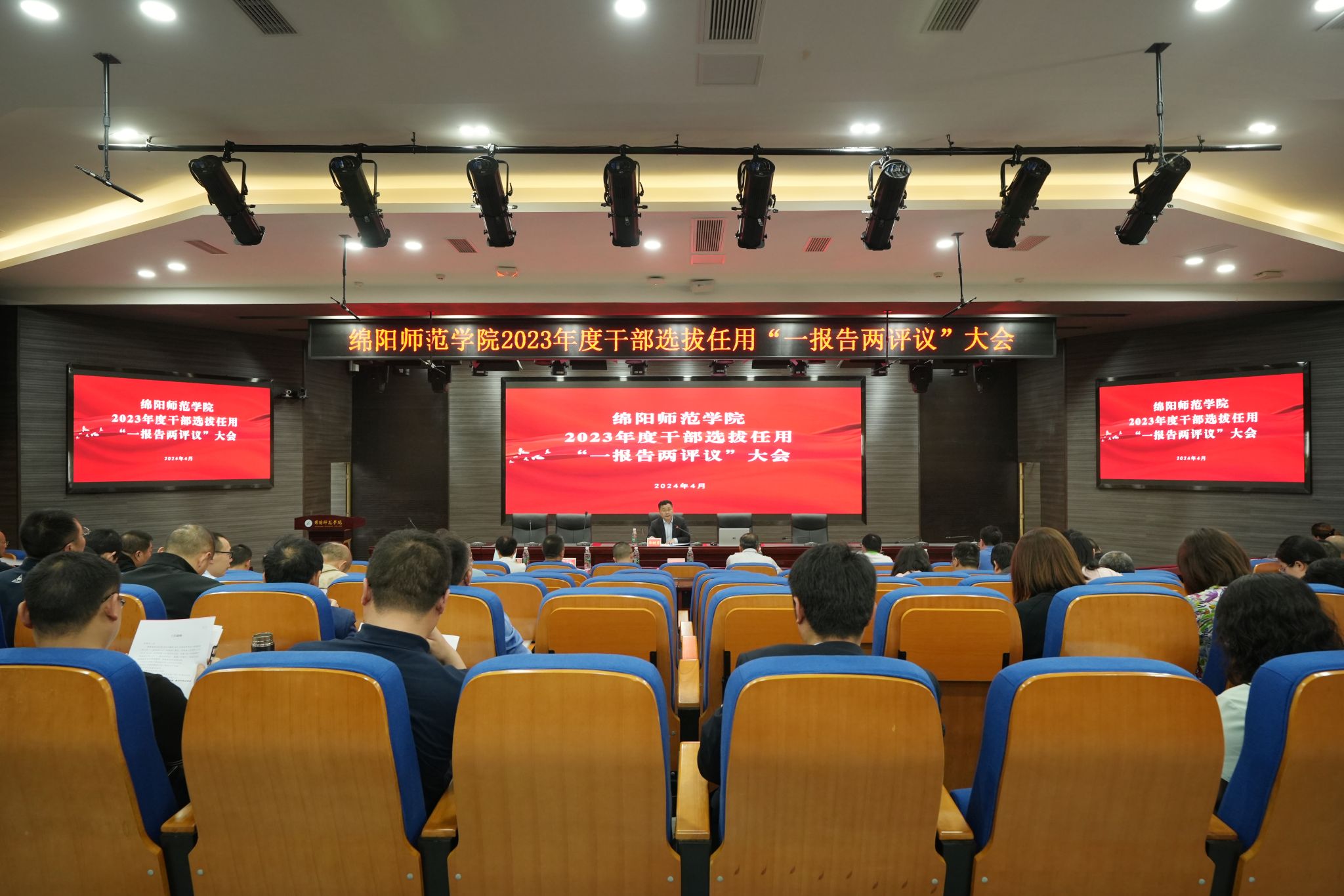 4月18日,学校在高新校区厚德楼246报告厅召开学校2023年度干部选拔任用“一报告两评议”会议。会议由党委书记李树勇主持。