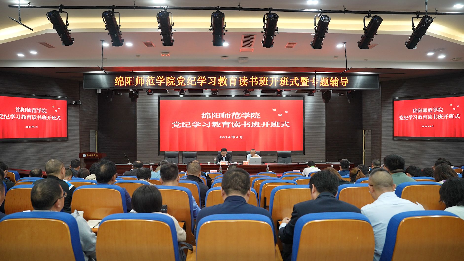 4月18日,学校举办党纪学习教育读书班暨专题辅导,深入学习贯彻习近平总书记关于党纪学习教育的重要讲话和重要指示精神,认真学习领会《中国共产党纪律处分条例》,示范带动全校党纪学习教育扎实深入开展。校党委书记李树勇作开班动员。党员校领导、党员中层干部参加读书班。党委副书记、校长陈寒主持开班式。