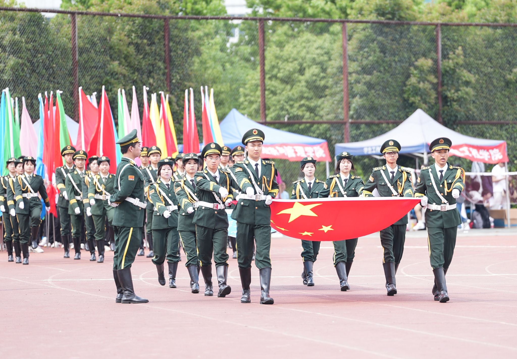 在闭幕式上,各学院代表队在彩旗方队的引领下迈着整齐的步伐入场,并为全校师生作办学特色展示。