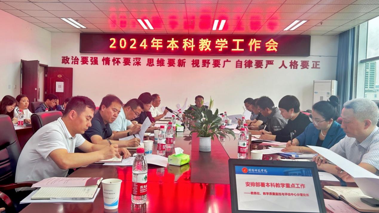 教务处、教学质量监控与评估中心、教师教育学院相关负责人布置了相关工作。郭英就严管课堂教学秩序,抓实课堂教学质量考核,推进毕业生审核等工作进行布置。江跃勇就毕业论文抽查、学科竞赛、“1+X”证书培训、实习实训等工作进行布置。赵琴琴就优化专业结构,修订人才培养方案,强化课程建设,组织申报校、省、国三级质量工程项目,强化质量工程项目管理等工作进行布置。蒋溢就高质量完成教学技能竞赛、三笔一话、教师资格面试等工作进行布置。王吉春围绕教学质量监控与评估中心“12311”工作计划,就有效推进本科教育教学审核评估整改、高位推进师范类专业认证“后半篇文章”、务实推进工程教育认证、高质量开展本科专业评估、有序开展新设本科专业监测评估、精准开展校院两级本科课程评估、科学开展职称评审教学质量考核、规范完成本科教学常态数据监测等工作进行布置。