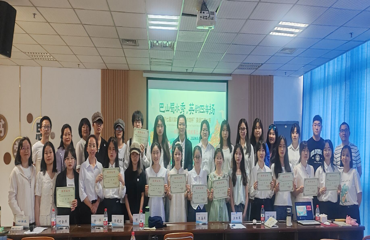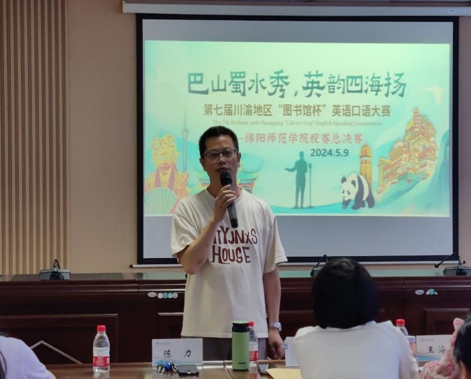 5月9日下午,“巴山蜀水秀 英韵四海扬”第七届川渝地区“图书馆杯”英语口语大赛beat365在线唯一官网校赛总决赛在图书馆六楼弘文厅举行,来自全校各学院经过网赛、初赛进入决赛的40余名同学同台竞技。图书馆党总支书记陈力及图书馆科技咨询中心、采编部、技术部负责人参加,第五届川渝地区英语口语大赛一等奖获得者外国语学院何金燕同学与王晓宏老师等担任评委点评嘉宾,学校读者协会会长刘宸郗同学主持。