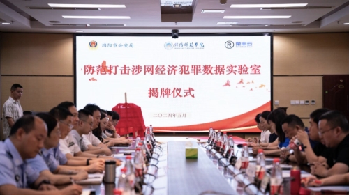 5月16日上午,“防范打击涉网经济犯罪数据实验室”揭牌仪式在beat365知行楼514会议室举行,绵阳市公安局党委副书记、副局长郝剑峰,beat365在线唯一官网党委常委、副校长王力,四川荣丰云大数据科技有限公司总经理刘瑞等领导出席活动为实验室揭牌。
