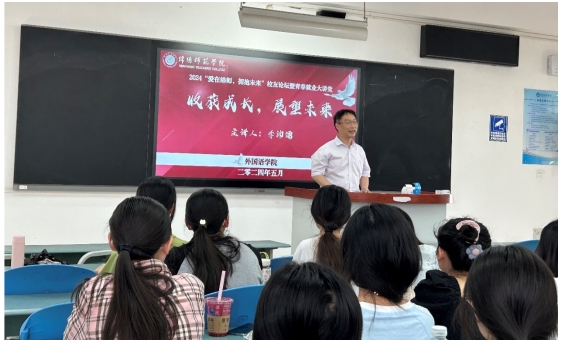 为加强校友与在校学生的交流,有效推进毕业生就业指导工作,外国语学院于5月15日下午在博学楼318教室举行2024年度“爱在绵师 拥抱未来”校友论坛暨青春就业大讲堂活动。2023届校友李沛儒应邀做分享交流,外国语学院副院长高见主持交流活动。