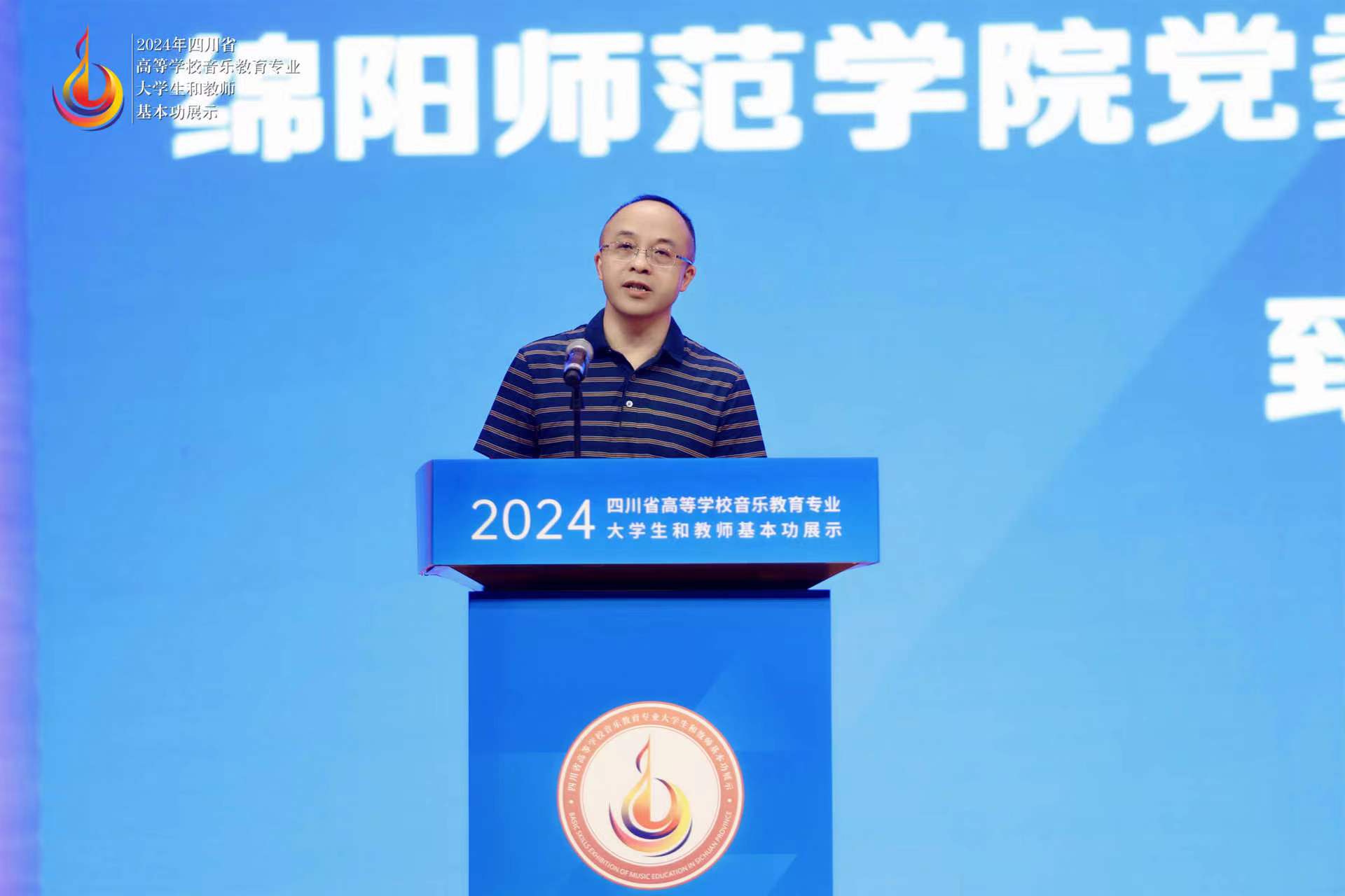 陈寒在致辞中代表学校对省教育厅长期以来关心支持学校发展表示感谢,向省内外的专家评委和参展师生表示欢迎。他指出,四川省高校音乐教育专业大学生和教师基本功展示是省教育厅主办的一项高水平、高质量的品牌活动,是各高校展示和交流音乐教育专业人才培养质量和教育教学成果的重要平台,也是音乐教育专业学子展示自我风采的闪亮舞台。他表示,办好这次活动,是学校的一件大事,学校精心组织、周密安排,形成全校协作、全力保障的良好工作机制,全力办好此项活动。
