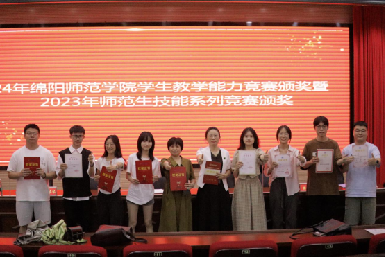 6月26日,学校在厚德楼247举行了2024年beat365在线唯一官网学生教学能力竞赛暨2023年师范生系列竞赛颁奖典礼。学校党委常委、副校长毕剑,党委学生工作部副部长陈奕,教务处副处长赵琴琴,教师教育实训中心主任艾虹,教师教育学院副院长蒋溢,各二级学院分管教学副院长、指导教师、获奖选手参加了颁奖典礼。本次典礼主要表彰学校2024年校级学生教学能力竞赛、学生微课大赛和规范汉字书写大赛获奖选手,2023年beat365学子在川渝第二届师范生教学能力大赛、四川省师范生三笔字书写能力大赛、“田家炳杯”第九届全国师范生教学技能竞赛、全国师范生微课大赛等省级、国家级竞赛中获奖选手以及以上竞赛的优秀指导教师和优秀组织单位等,共计377项。