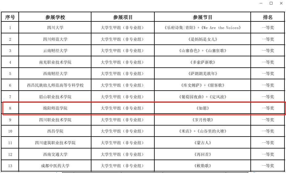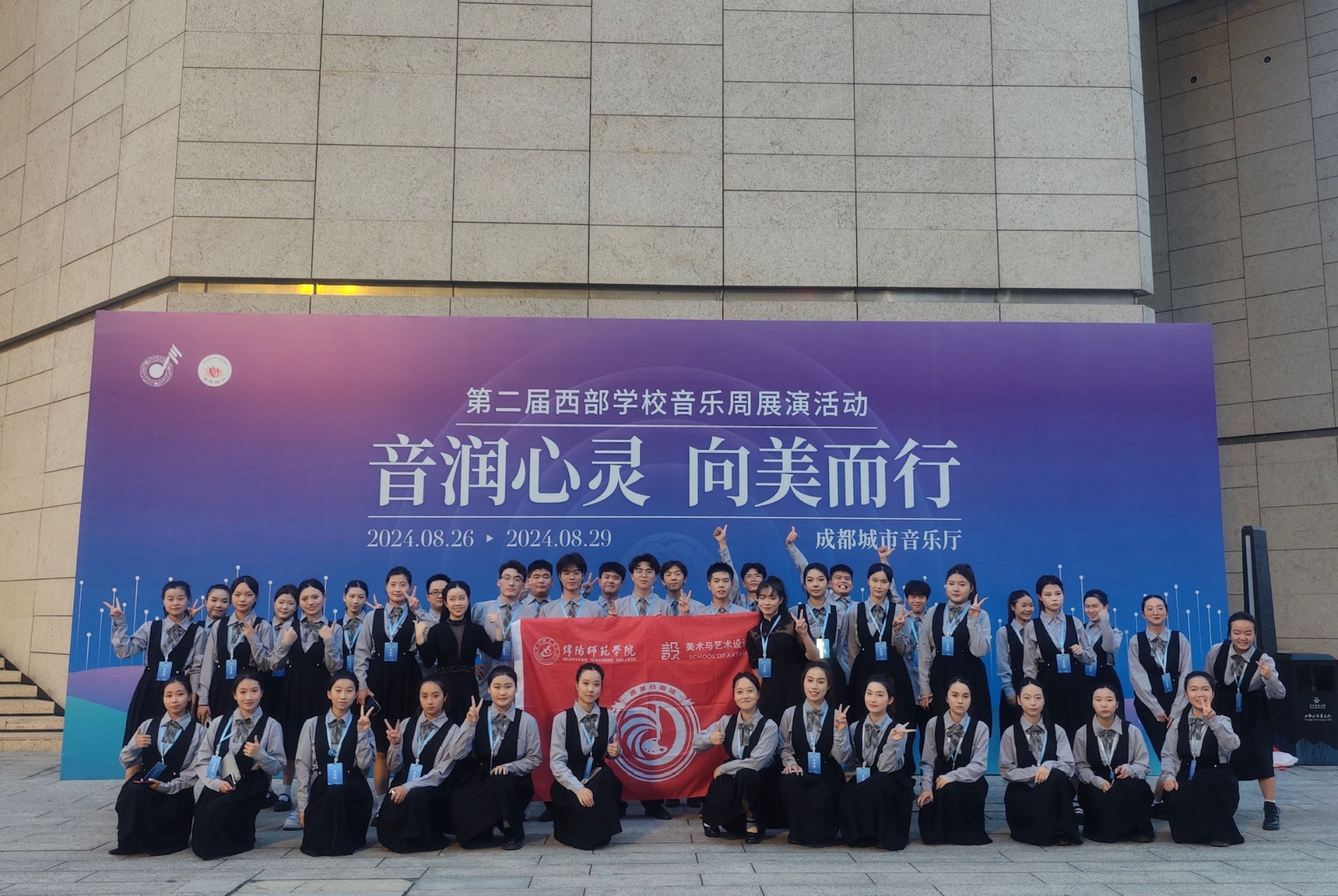 近日,由四川省教育厅、重庆市教育委员会、贵州省教育厅、云南省教育厅联合主办,四川音乐学院承办的第二届西部学校音乐周展演活动在成都城市音乐厅举行。美术与艺术设计学院积极响应号召,组织学院学子参加活动。经过激烈角逐,美术与艺术设计学院善美合唱团合唱作品《如愿》在此次活动中脱颖而出,荣获大学生甲组(非专业组)一等奖。