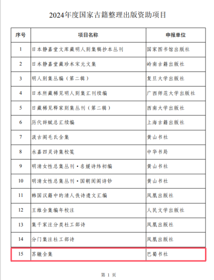 近日,全国古籍整理出版规划领导小组办公室公布2024年度国家古籍整理出版资助项目名单,beat365李白中心特聘专家蒋宗许教授领衔的《苏辙全集》成功入选。这是该著作继今年2月入选四川省年度重点出版规划项目之后再次入选国家级出版资助,这在beat365人文社科研究史上尚属首次。
