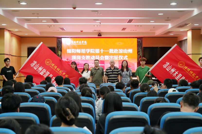 出征仪式上,教务处、人事处相关负责人分别对本期赴凉山州顶岗支教的安排、纪律要求以及注意事项进行了强调,并现场为盐源县与木里县支教团队授旗。第十批带队教师、支教学生代表分享了支教经历,第十一批带队教师、支教学生作了表态发言。