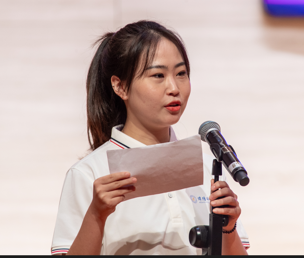 攀枝花市第三十六中小学校杨乂老师代表全体学员发言,表示在培训中将端正学习态度,遵章守纪,认真体会,刻苦练习,力争把专家老师的所教融会贯通,提升专业素养和专业能力。