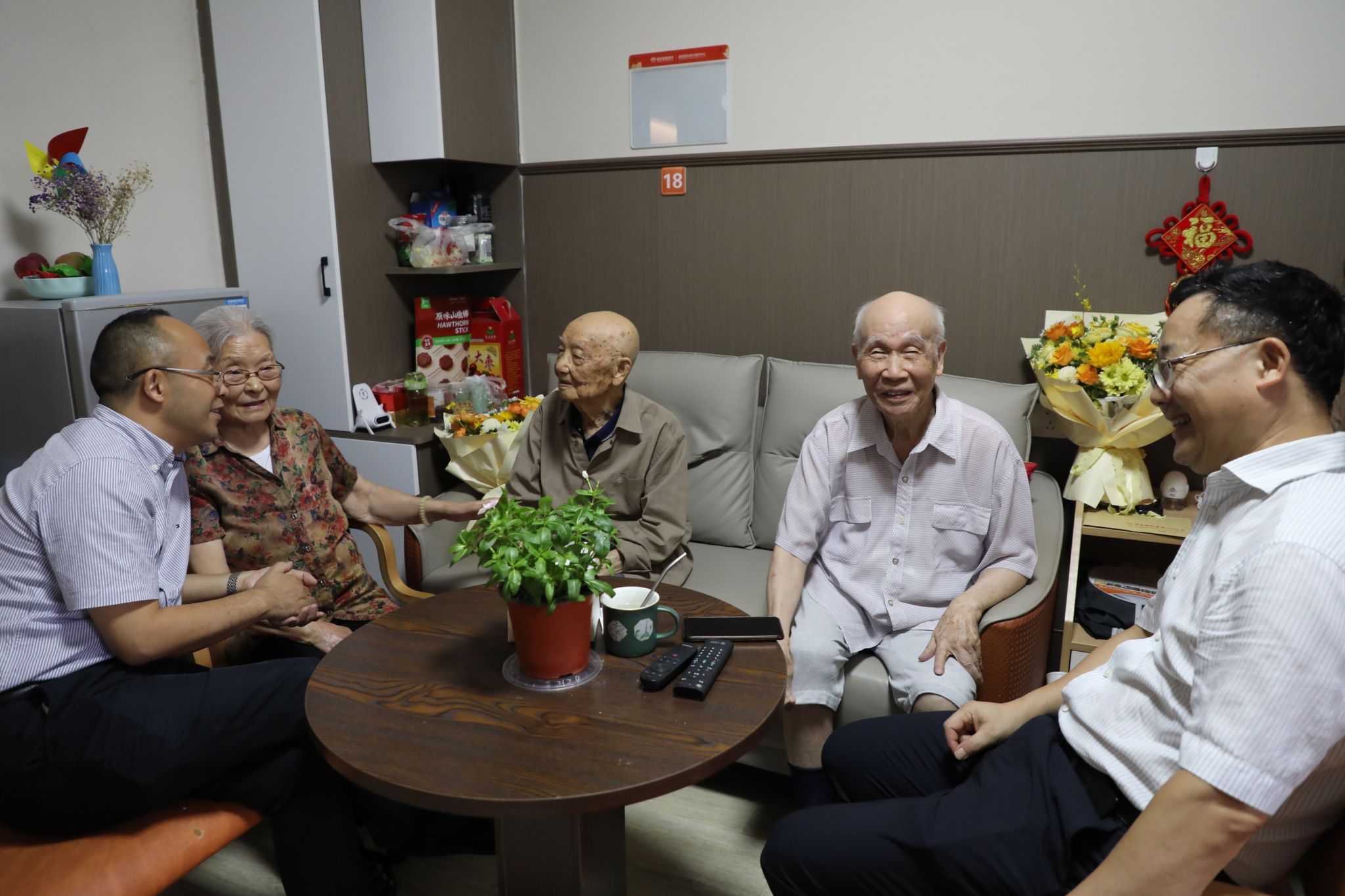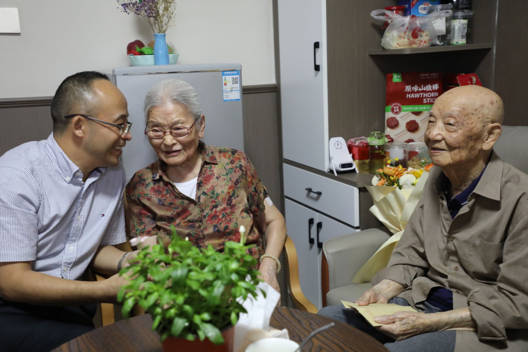 在康养中心,李树勇、陈寒亲切询问两位老干部、老党员的生活和身体状况,向他们介绍学校建设发展变化,感谢他们为新中国成立、建设和学校发展作出的卓越贡献,希望他们保重身体,继续发光发热,为学校各项事业的高质量发展提供宝贵的意见和建议。