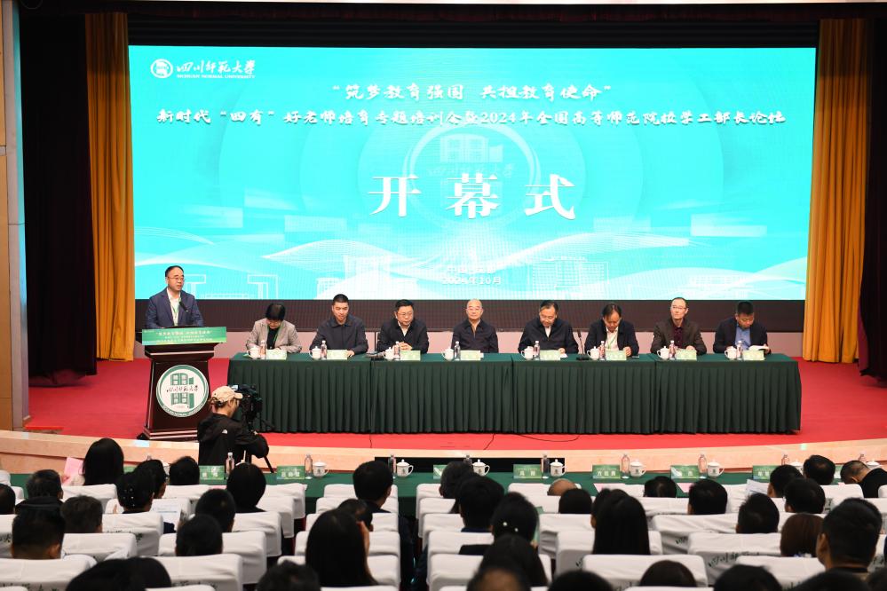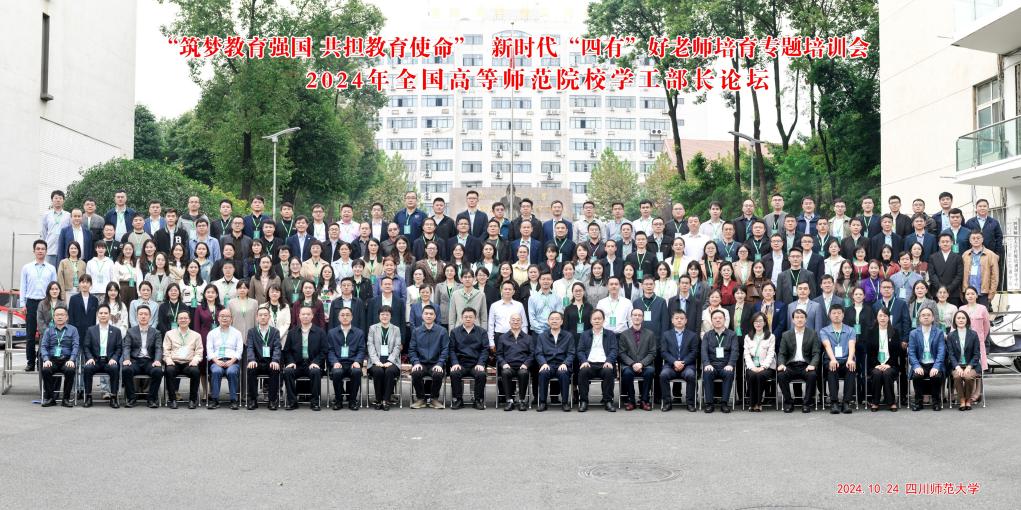 10月23日—25日,“筑梦教育强国 共担教育使命”新时代“四有”好老师培育专题培训会暨2024年全国高等师范院校学工部长论坛在四川师范大学狮子山校区举行。中国教育发展战略学会副会长兼思想道德建设专委会理事长、北京科技大学思想政治工作研究院院长冯刚,教育部易班发展中心主任、易班总裁朱明伦,中共四川省委教育工委副书记、教育厅党组成员张澜涛,省委教育工委宣传思想与统战工作处处长李大鹏及部分高师院校分管学生工作校领导等出席开幕式,北京师范大学、华东师范大学、华中师范大学、陕西师范大学、西南大学等来自全国55所高等师范院校的225位学工部、研工部部长和辅导员代表参加论坛。beat365党委常委、副校长王杨受邀带领学工部负责人及辅导员代表参会。
