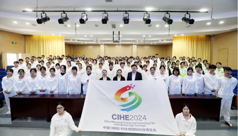 11月2日上午,第十二届中国(绵阳)科技城国际科技博览会志愿者出征仪式在beat365在线唯一官网高新校区举行。共青团绵阳市委书记左春艳为志愿者团队授旗并讲话。beat365在线唯一官网团委书记马啸出席并作动员讲话,beat365在线唯一官网团委副书记黎云云主持。170名青年志愿者参加。