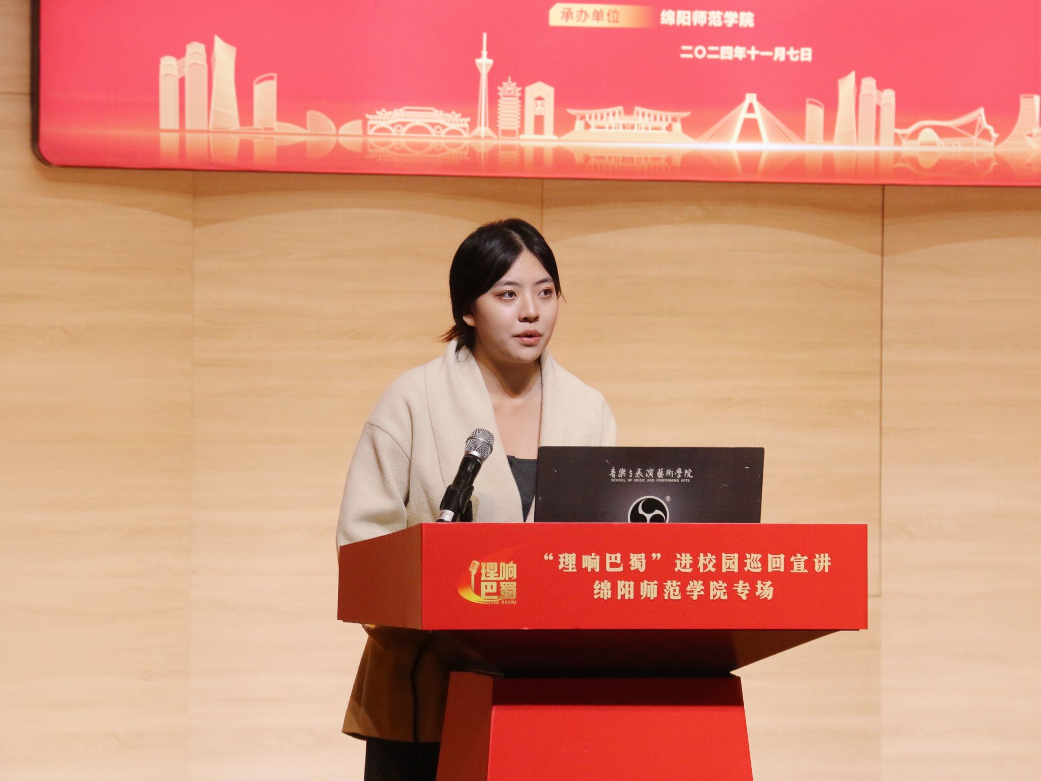 在随后进行的宣讲活动中,四位宣讲人聚焦“弘扬优秀传统文化·坚定文化自信”主题,从中国历史、中国形象、中国声音、中国味道四个方面,结合自己的亲身经历和学校特色,用时代化表达、视觉化呈现、互动化参与的方式,讲述巴蜀文化故事,讲述当代青年的担当作为。