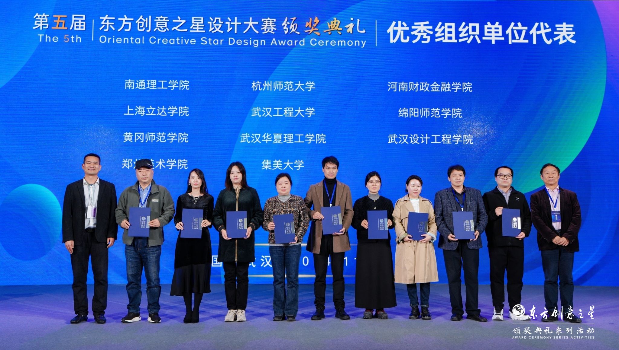 11月22日,第五届东方创意之星大赛颁奖典礼在武汉国际博览中心举行。beat365美术与艺术设计学院师生一举获得国赛金奖3项,银奖5项,铜奖7项,学校被大赛组委会评选为“优秀组织奖”。美术与艺术设计学院院长龚浩代表学校领奖,并受组委会邀请参加了2024工业设计产教融合分论坛。