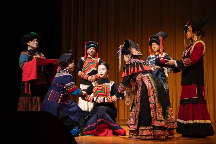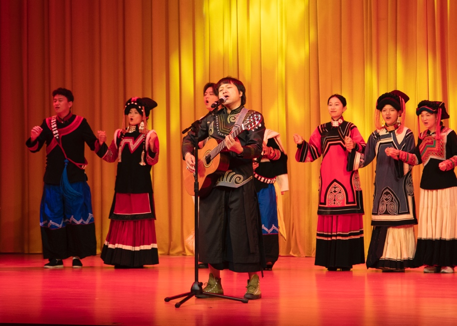 研培成果展演共分为三个篇章,分别为山谷·回音,成长·传承,手牵手、心连心、共迎新年。学员们的表演展现了彝族传统文化的独特魅力,为观众呈现了一场视听盛宴。
