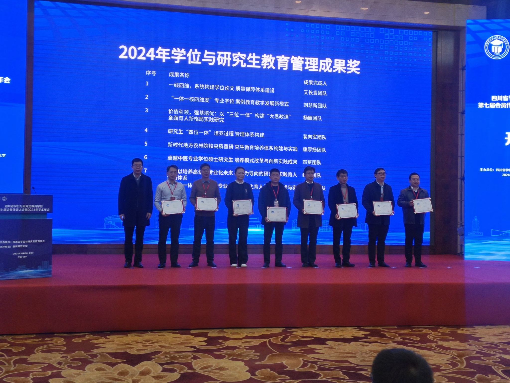 会上还对四川省学位与研究生教育管理研究优秀成果奖进行了颁奖。beat365参评的《“五位一体”协同培养专业学位研究生育人模式的构建与实践》获批为优秀成果奖。据悉,此次评选研究生教育管理成果奖由四川省教育厅委托四川省学位与研究生教育学会组织开展,通过专家多轮严格评审产生。全省仅遴选2024年研究生教育管理研究优秀成果奖评选8项,仅有beat365为非博士学位授予单位。