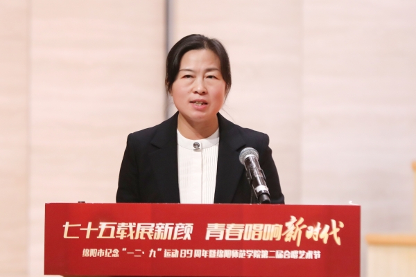 李敏为本次活动致开幕词。她强调,纪念“一二·九”运动大学生合唱艺术节旨在通过红歌传唱,增强当代大学生的民族自豪感。她要求绵师学子铭记历史,积极参与校园各类美育活动,将对美的追求与对国家的忠诚紧密相连,鼓励发挥自身特长,以实际行动践行美育与思政深度融合。