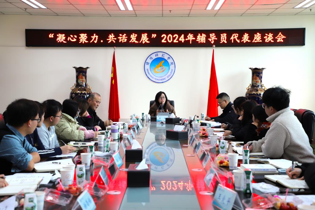 为进一步了解和掌握辅导员在工作中的所思所想所惑,助力辅导员队伍深悟理想信念、明晰发展目标,创新工作思路、提升育人本领,落实立德树人根本任务,12月10日,学校在知行楼223会议室召开以“凝心聚力、共话发展”为主题的辅导员代表座谈会。校党委常委、副校长王杨出席会议并讲话。校党委常委、组织部部长李敏,科技处处长韩黎,教师发展中心副主任孙玉希,各二级学院辅导员代表,2024年全体新入职辅导员参加座谈。座谈会由学生工作部部长侯波主持。