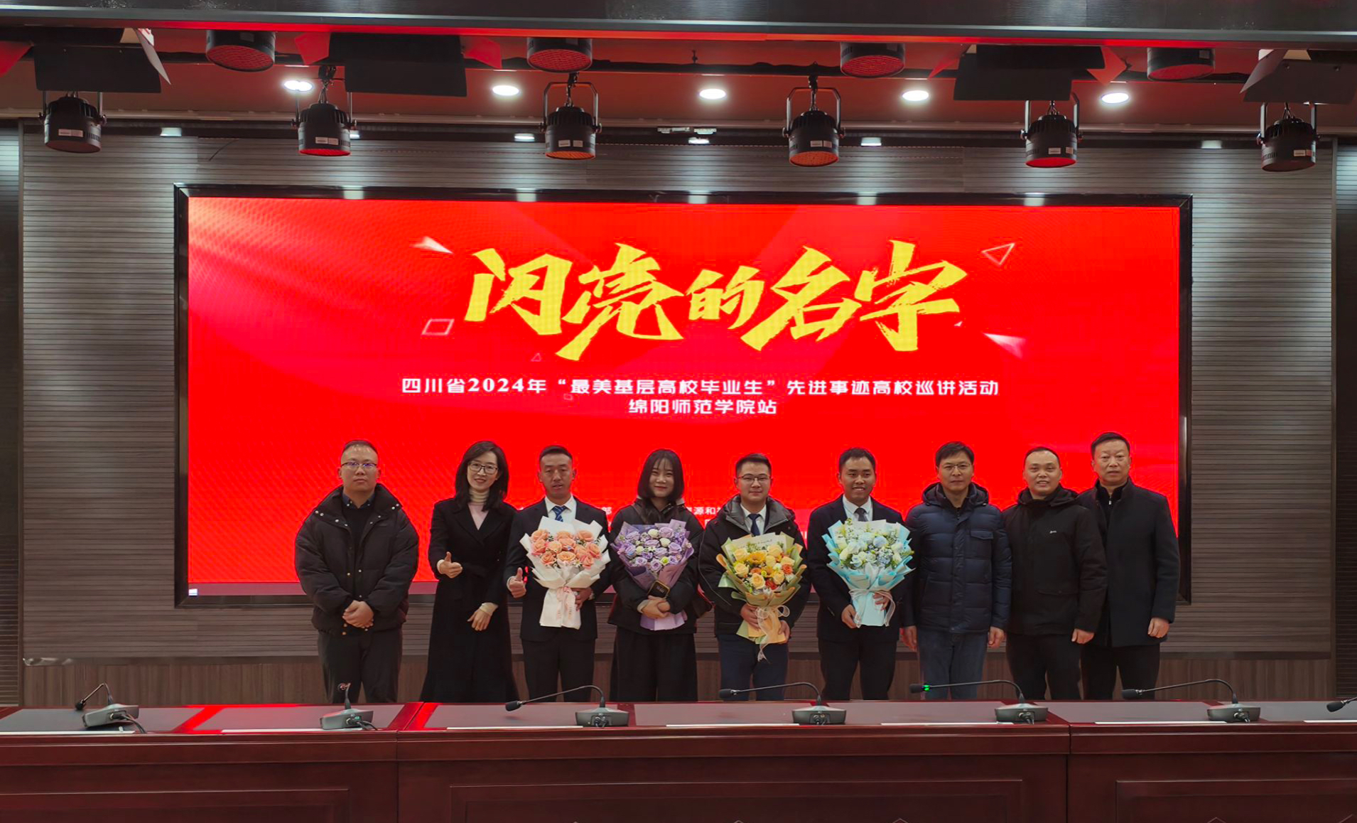 12月16日上午,由四川省人社厅主办、四川人才交流中心承办的“闪亮的名字——四川省2024年最美基层高校毕业生先进事迹高校巡讲活动”在beat365高新校区厚德楼学术厅举办。副校长王杨,招就处相关负责人及各二级学院副书记,高新校区毕业生代表参加此次活动。