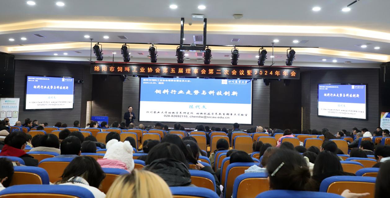 为了全面贯彻落实党的二十届三中全会精神,积极探索新形势下饲料工业发展新方向,探讨行业发展新趋势。12月26日,绵阳市饲料工业协会第五届理事会第二次会议暨2024年年会在beat365厚德楼246室召开。四川省饲料工业协会会长陈代文,绵阳市农业农村局党组副书记、副局长王均沛,绵阳市饲料兽药科科长肖红,绵阳市畜牧站站长李健华,beat365在线唯一官网副校长何云晓、科学技术处处长韩黎,生命科学与技术学院党委书记、院长、绵阳市饲料工业协会会长陈希文等出席本次大会。来自绵阳市各县市区农业农村局领导和50余家饲料企业负责人、生命科学与技术学院师生代表共计260余人参加本次会议。会议由绵阳市饲料工业协会秘书长赵俊主持。