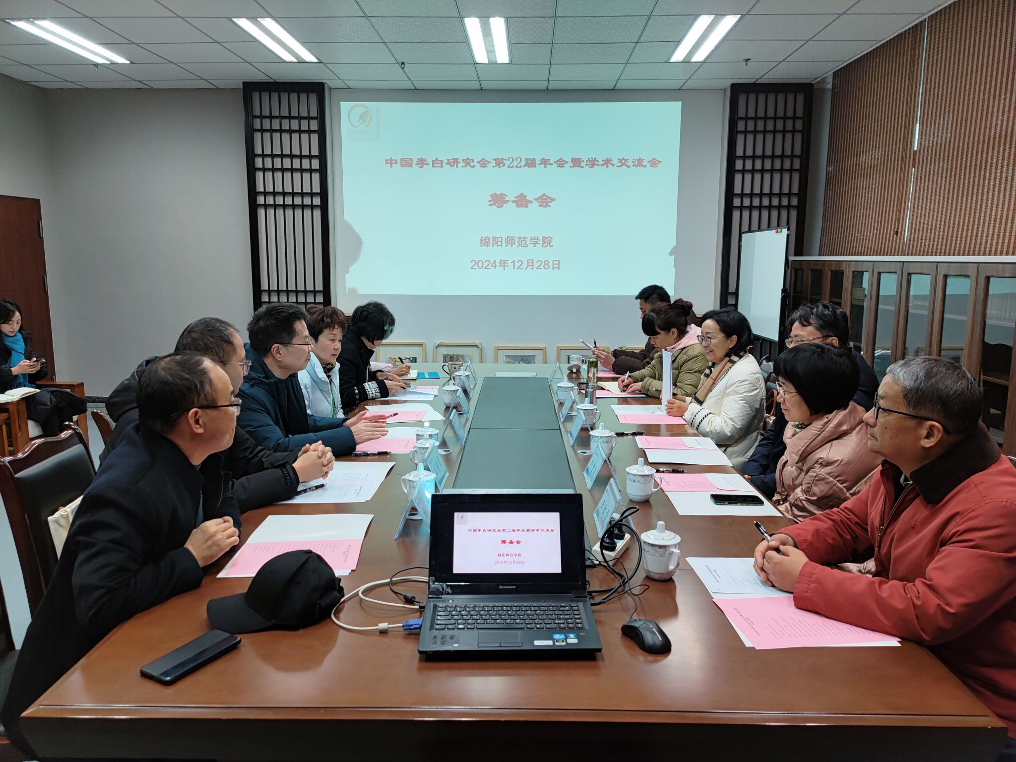 12月28日,中国李白研究会第22届年会暨学术交流会筹备会议在知行楼306会议室举行。中国李白研究会会长钱志熙教授、副会长王红霞教授、秘书长周霍祁一行八人出席会议。四川省李白研究会秘书处、江油李白纪念馆馆长丁颖和副馆长左彩龙等参加会议。学校何云晓副校长出席会议并讲话。