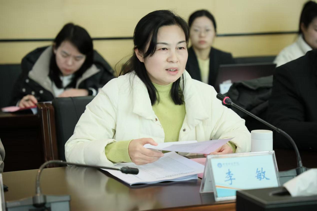 李敏代表学校感谢专家们的莅临指导,并结合自身的科研经历提出了具体的、有建设性的指导意见。她指出,在选题、论证、结构框架的建构中要始终坚持做到以下几点:一是紧紧围绕兴趣所致、能力所及、热点所靠、同行所依、长期所积五个方面,不断提升学术主动性;二是打开思路,加强交流,形成学术共生圈、专业朋友圈、同门互助圈,不断强化专业引领力;三是常常自我反思,在课题框架、逻辑思维上优化建构,树立学术自信,不断加强“举一反三”的技能;四要在自己的科研道路上天天积累、天天向上,节节拔高、层层递进,抱团发展、久久为功、各得其所,做出最好、最真、最有用的学问,为个人的成长、学院的发展、学校愿景的实现赋能助力。