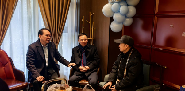 市人大副主任、民进市委李主委和学校统战部王德炎部长与会员亲切交谈