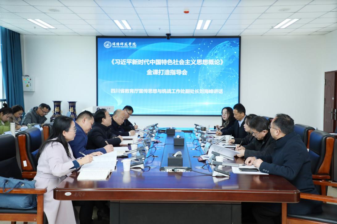 为全面贯彻落实习近平总书记关于学校思想政治理论课建设的重要指示精神,扎实推进新时代高校思政课改革创新,1月16日,学校在知行楼434会议室举行《习近平新时代中国特色社会主义思想概论》金课打造指导会。四川省教育厅宣传思想与统战工作处副处长刘海峰,绵阳市委宣传部副部长、二级调研员陈进宝,5·12汶川特大地震纪念馆党组书记、馆长何瑞雪,学术科科长杨孟昀,西南石油大学马克思主义学院副院长张莉应邀出席指导。beat365党委副书记、校长李敏,党委常委、宣传部 统战部部长王德炎,教务处处长邹洪伟出席会议并讲话。beat365马克思主义学院领导班子、学院《习近平新时代中国特色社会主义思想概论》教研室全体教师共同参加了此次会议。会议由学校党委常委、副校长毕剑主持。