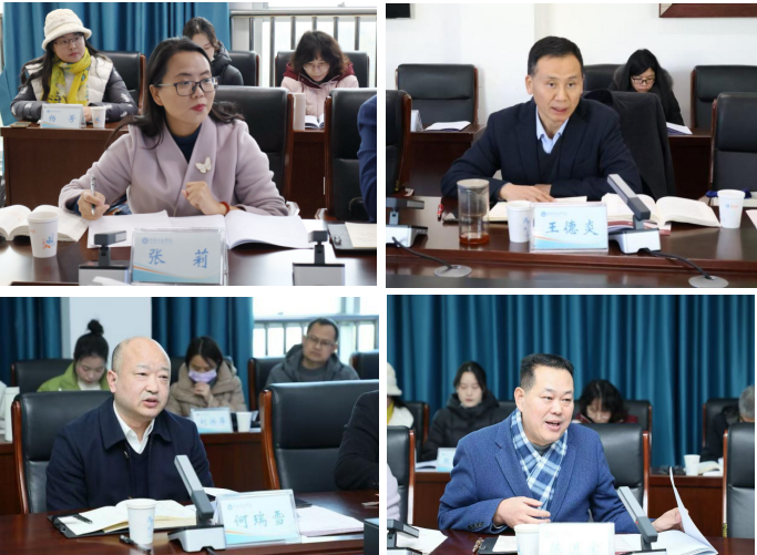 在听取课程团队汇报后,与会专家进行精准点评。张莉指出,教学设计应体现对错误思潮的回应,采用“问题链”形式层层深入,提升课程吸引力;邹洪伟强调,思政课要深耕理论创新,注重教学内容的时代性和教育性的结合;王德炎提出,教学设计需充分纳入习近平总书记的最新讲话精神,加强内容重置,引经据典,讲述鲜活故事;何瑞雪从实践性角度切入,强调青年教师要结合习近平总书记的重要论述构建系统化的理论框架,将理论讲深、讲透。陈进宝表示,思政课建设要高度重视,形成坚强的领导保障,进行统筹推动。他高度肯定了马克思主义学院的积极担当,表示全力支持金课录制。