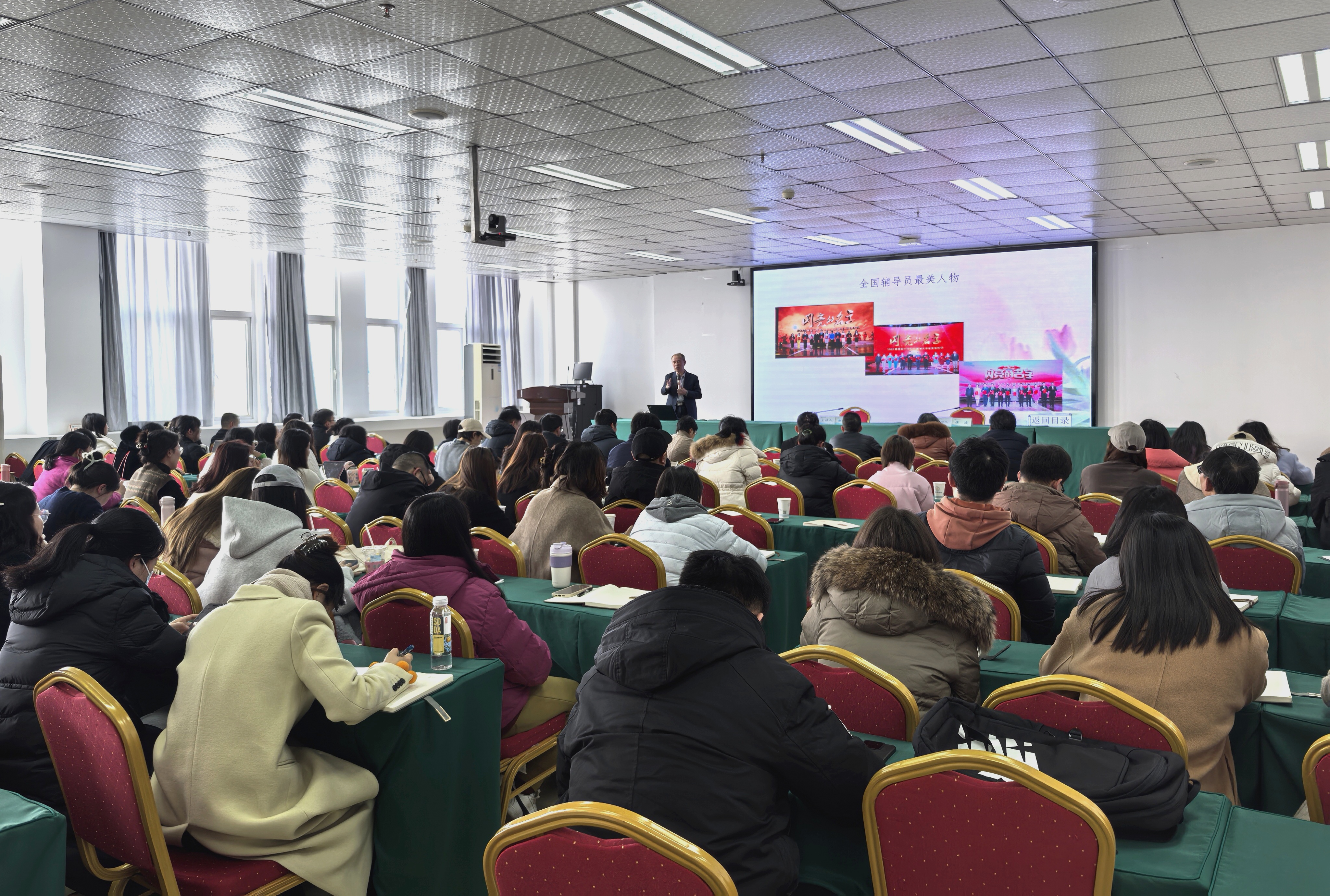 讲座中,曲教授用一张张记录温馨瞬间的照片、一封封饱含深情的信件、一段段充满智慧的育人故事,展现了他四十多年如一日对教育事业的热爱、对思想政治教育工作的赤诚、对青年学生的关爱、对辅导员工作的执着坚守。他把教书当作职业,把育人当作追求,把青春奉献给教育事业和心爱学生的情怀,让在场每位辅导员老师深感敬佩、深受启发、深为感动。