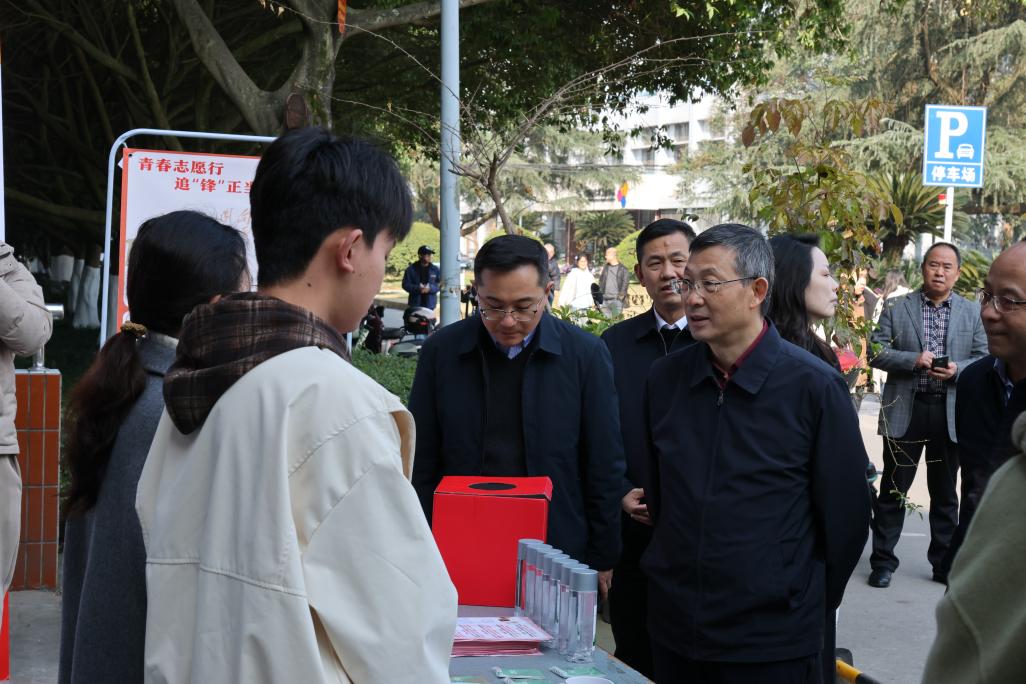 3月21日上午,省委教育工委书记、教育厅党组书记、厅长余孝其,校党委书记陈寒,党委副书记、校长李敏等领导亲临“雷锋月主题活动”现场,详细了解活动开展情况,与志愿者们进行交流。余孝其对本次活动给予了充分肯定,强调要落实好后续工作,让每一件物资都能送到山区儿童手中,解决他们的实际困难。陈寒、李敏鼓励城建学院的主办团队,希望大家以雷锋月实践活动为契机,在实践中深化对雷锋精神的领悟与传承,用实际行动展示新时代大学生的风采。