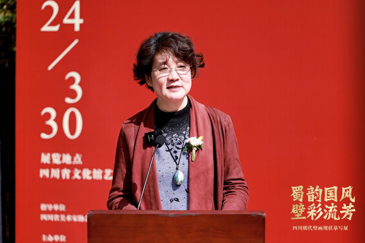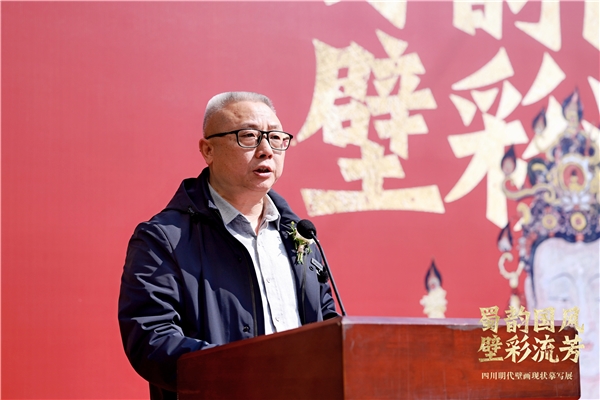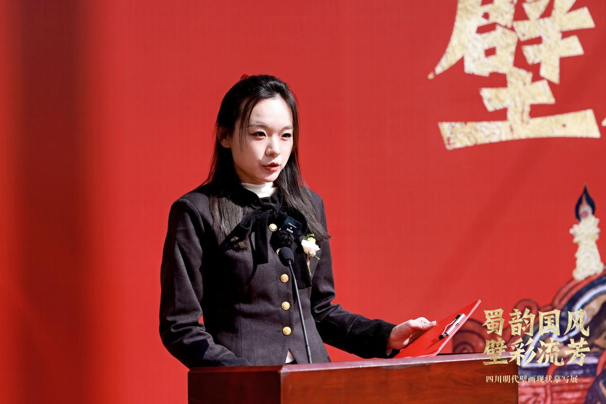 吕骑铧在致辞中指出,作为贯彻落实党的二十大精神的文化实践,展览通过专业摹写技艺的展示,系统呈现四川明代壁画的原始风貌与艺术精髓,生动诠释了文化遗产保护与传承的当代路径。同时,他期待本次展览能让文化成果更多惠及大众,激发公众对优秀传统文化的热爱与传承。
