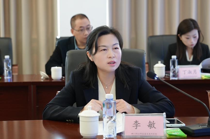李敏在讲话中肯定了两校间缔结的“老朋友”“世交”情谊。她指出,两校同为扎根绵阳服务四川的教育力量,在服务区域高质量发展、培养高素质应用型人才、学校事业发展上台阶等方面高度契合、并肩同向。当前学校正深入实施“优教、强工、扶农、兴文、精艺”学科专业结构调整,将全力冲刺“升大拼博”战略目标。四川幼专在学前教育、艺术教育、服务一老一小等领域特色鲜明,双方合作空间广阔。为推进对口共建落实落细,李敏提出“四个共建”工作希望:一是共建机制要牢,建立联席会议制度确保合作常态化;二是共建方向要清,聚焦教师教育乡村振兴等重点领域;三是共建措施要实,推动双方干部互挂、科研平台共建;四是共建成果要亮,聚力打造西南地区学前教育研究高地。她期待通过深度协作实现“一加一大于二”的倍增效应,谱写两校合作新篇章,为教育强省注入新动能。