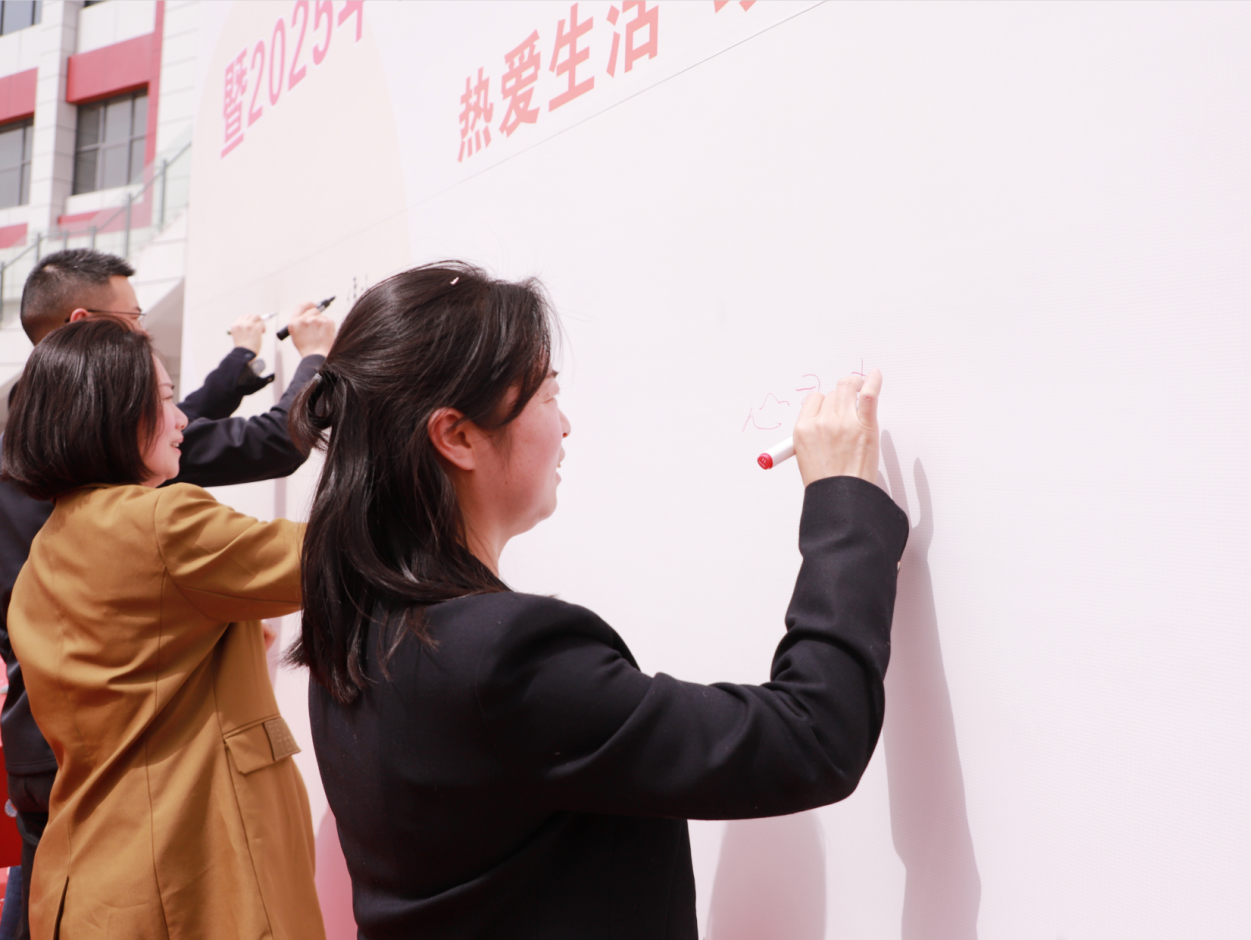 在温馨欢乐的氛围中,李敏宣布首届草溪心晴节暨2025年春季心理健康宣传季开幕。开幕后,全场师生纷纷在心语心愿墙上签名并写下美好祝福。心理健康教育中心及各二级学院共设置12个心理活动体验摊位,活动围绕“德育、智育、体育、美育、劳育”策划设计,通过绘画、叙事、运动等方式开展,师生共同参与,现场气氛热烈。