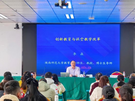 为落实教育改革要求,推动创新教育与教学融合,提升教育教学质量,3月29日下午,教务处在高新校区知行楼914室举办创新教育与课堂教学改革专题讲座,特邀国家级一流本科课程负责人、陕西师范大学教育学部部长李森教授莅临指导。学校党委副书记、校长李敏,教务处负责人,21个二级学院110余名教师参会。会议由李敏主持。