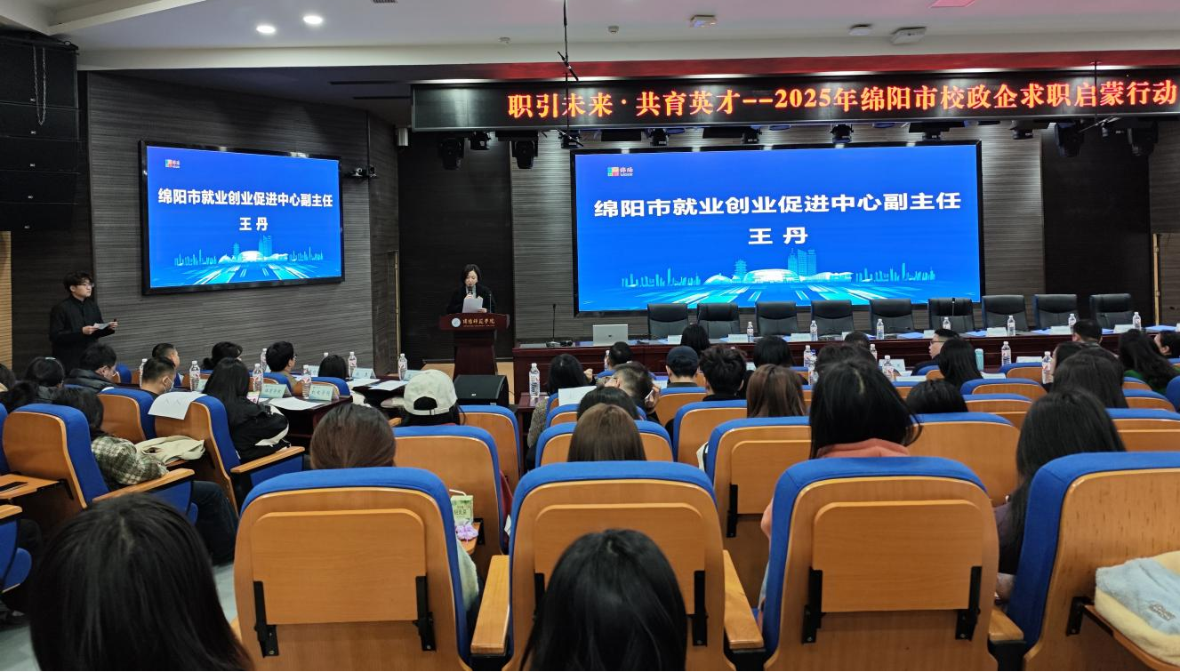 职引未来、共育英才。为贯彻落实四川省关于高校毕业生就业服务工作部署,推动校企合作与人才精准对接,3月28日,由绵阳市人力资源和社会保障局、绵阳市就业创业促进中心、beat365在线唯一官网联合主办的2025年绵阳市校政企求职启蒙行动在beat365高新校区246报告厅启动。活动旨在通过搭建校政企三方联动平台,强化职业指导服务,助力绵阳市高校毕业生实现高质量充分就业。