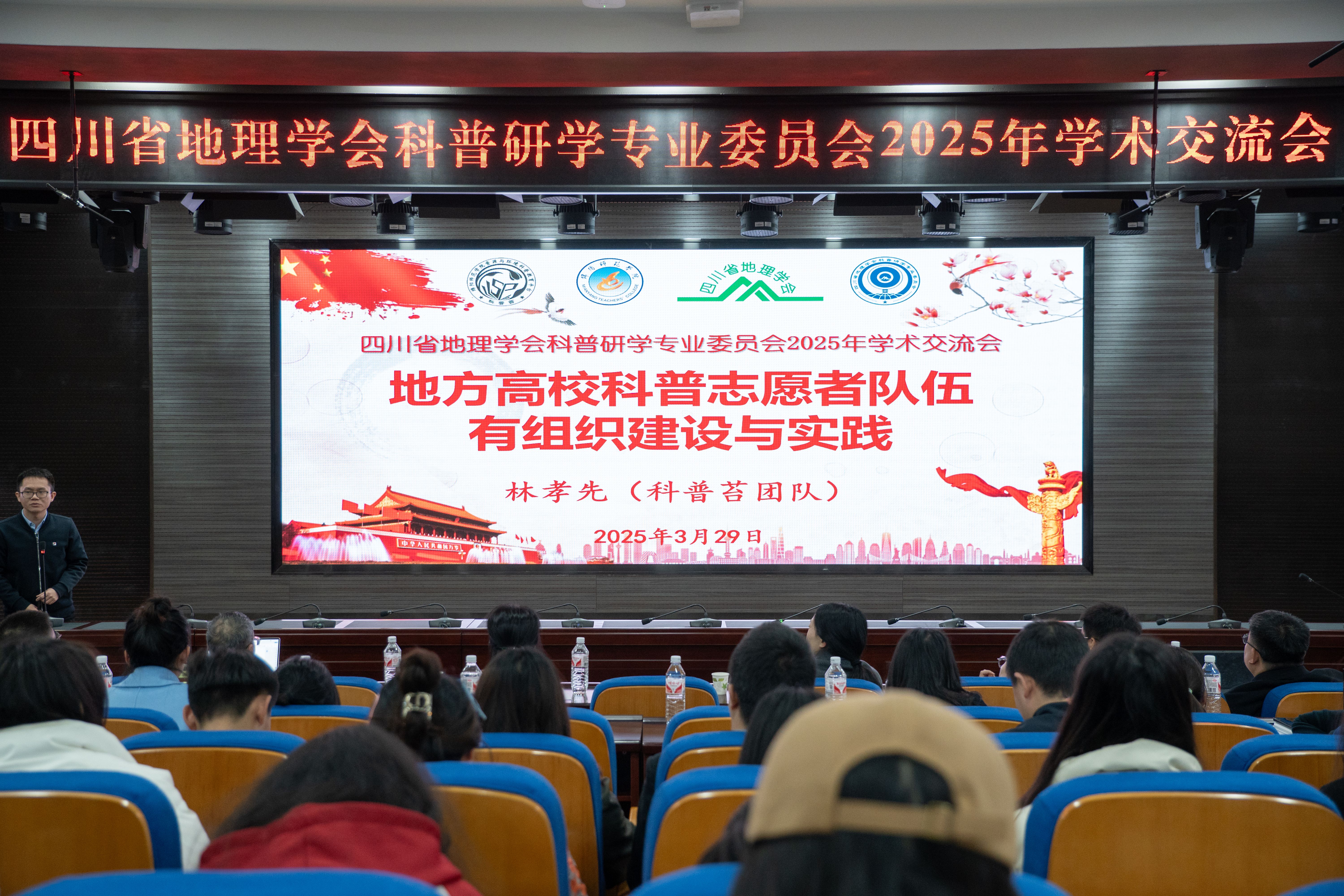 3月29日上午,开幕式在学校厚德楼246报告厅举行。beat365地理与环境学院院长陈浩教授主持,四川省地理学会副秘书长胡颖、beat365在线唯一官网科技处处长韩黎教授分别致辞,强调科普研学对地理学科创新与人才培养的重要意义。绵阳市科学技术协会副主席何勇出席会议开幕式。开幕式后,全体与会者合影留念,记录这一学术盛事。