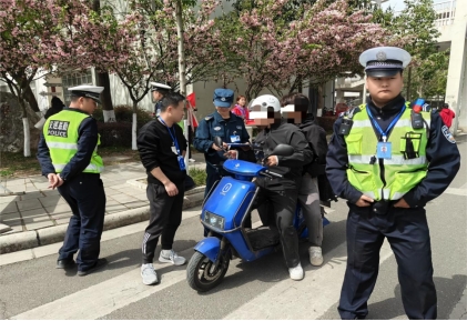 针对校园电动车违规乱象,专项整治组建立“定点值守+智能抓拍+流动巡查”防控体系。在重点路段设置5个教育劝导岗,运用移动警务终端实时核查车辆信息。行动期间累计查处超速行驶、违规载人等行为40余起,对违规人员实施“现场警示学习+安全承诺书签订+二次核查”的全流程教育。