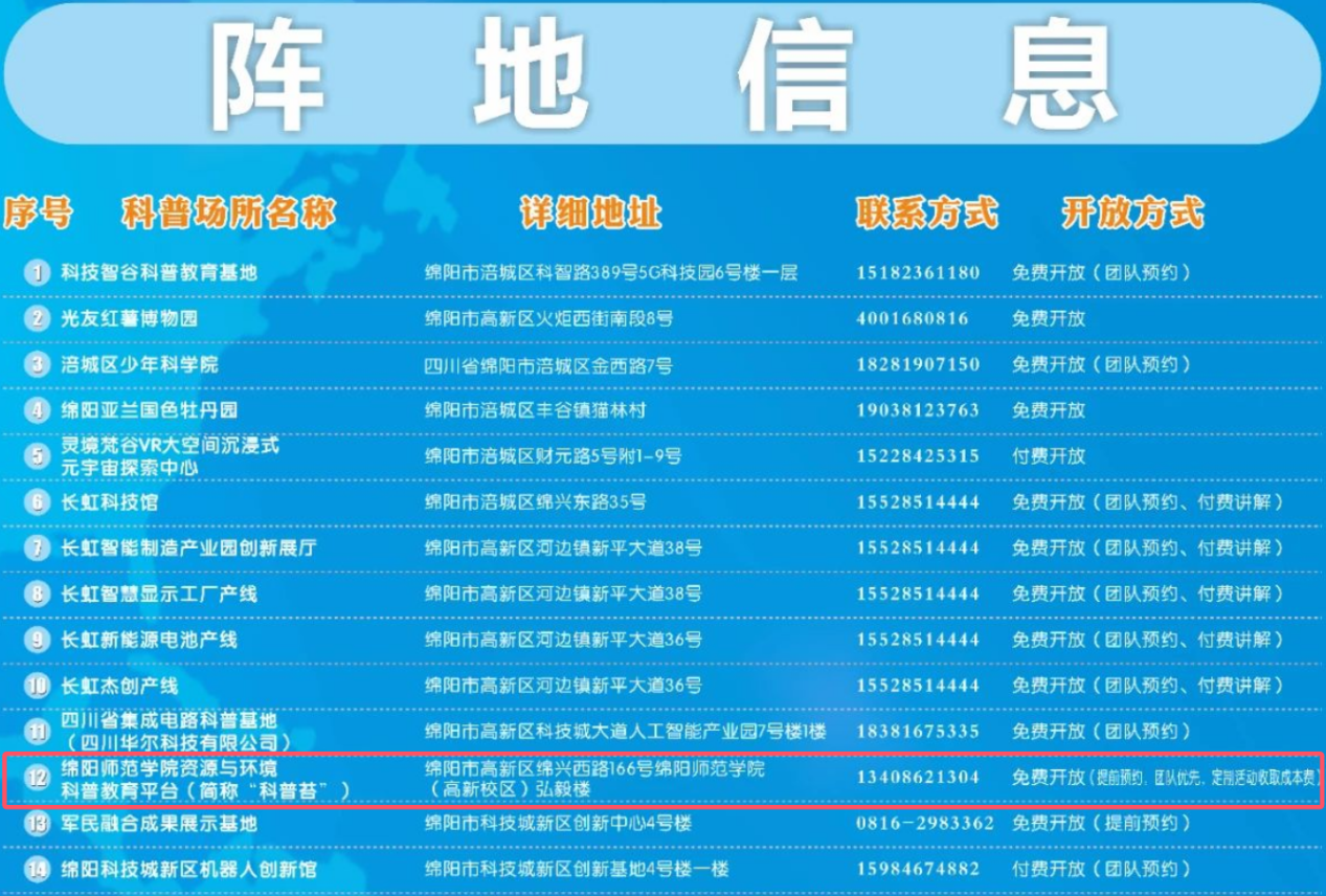 4月3日,绵阳市科学技术协会公布了绵阳市科普地图(首期)名单,beat365资源与环境科普教育平台(简称“科普苔”)作为“科研场所”代表成功入选。此次入选,是对“科普苔”工作的充分肯定,也为“科普苔”开展有组织科普提供了新的平台。