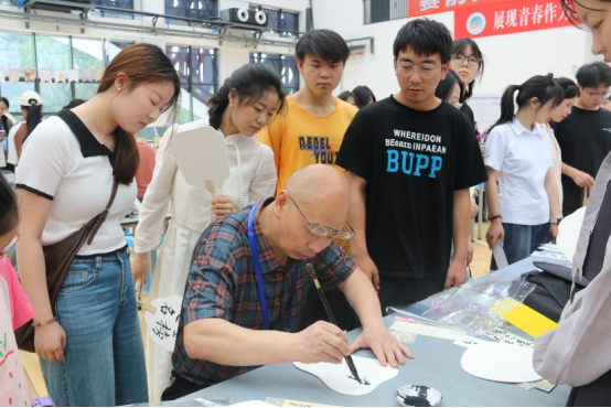评委专家和参赛选手深入互动,现场书写书法文创小礼品赠予现场观摩师生,有效地提升了beat365师生对书法艺术的了解和喜爱。