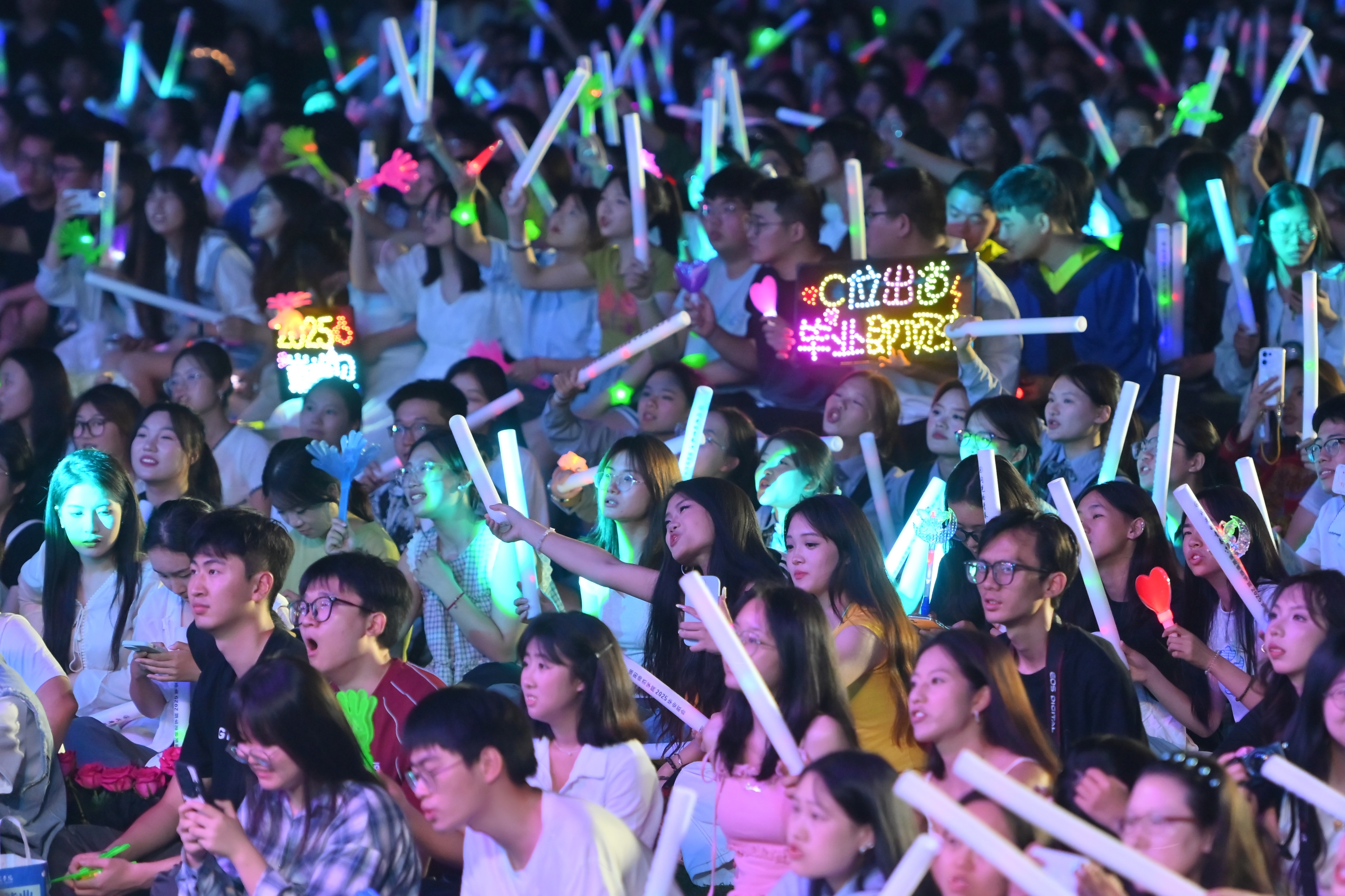 6月16日晚,“闪光的青春”学校2025年毕业歌会暨第二届夏日草地音乐节在高新校区田径运动场举行。校领导陈寒、李敏、罗娅君、曾庆亮、王力、蒋伟、何云晓、王杨,与学校各职能部门负责人,各二级学院党委书记、院长、党委副书记、学办主任、毕业班辅导员、2025届毕业生等六千余名师生共同观看演出。