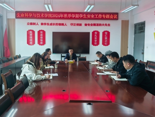 11月5日,生命科学与技术学院在学院会议室召开了2024年秋季学期学生安全工作专题会议。学院党委书记、院长陈希文,副院长姜立春以及全体专兼职辅导员参加。会议由陈希文主持。