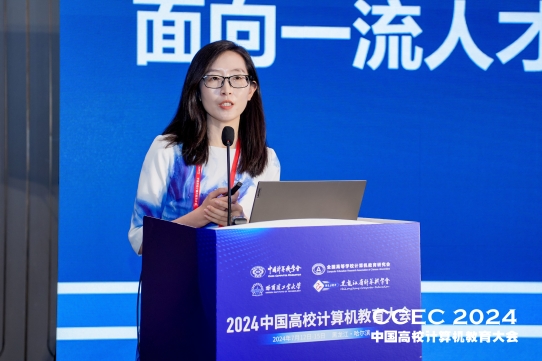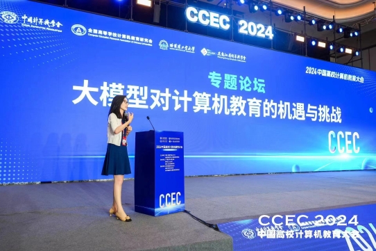 在大会大模型对计算机教育的机遇与挑战专题论坛上,王杨作了主题为“基于大模型的计算机通识课程探索”的报告。她深入剖析了有效利用大语言模型来改进并优化现有计算机科学的教学方法,旨在提升学生的主动学习能力与批判性思维,为培养适应未来社会需求的高素质计算机人才奠定坚实基础。
