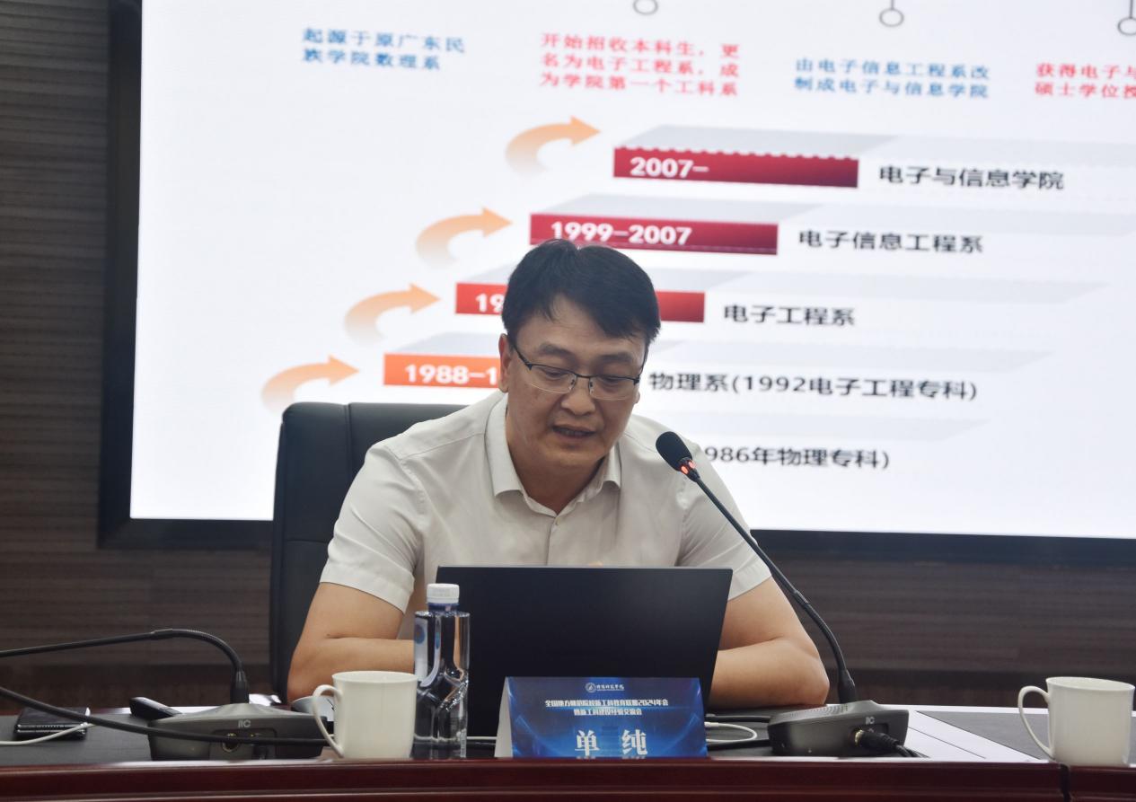 来自广东技术师范大学电子与信息学院教授单纯作第二场主旨报告。单纯以学校电子与信息学院为例,介绍了学院主动对接大湾区数字产业链高质量发展需求,与广州数控、广州思林杰、德赛西威等知名企业共建产业学院,开展联合授课,创新人才培养模式,实现教育链、产业链、供应链、人才链与价值链有机衔接的典型做法,引发与会代表的强烈反响与共鸣。